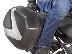 La carga máxima permitida es de 10 Kg y puede albergar sin problemas un casco abatible en cada maleta. Para finalizar, el sistema de fijación es el ya conocido y efectivo MONOKEY SIDE con 4 puntos y compatible con todos los sistemas de fijación Givi PLX y PLXR.