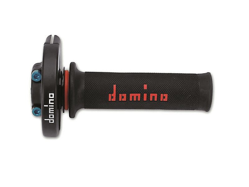 Mando gas Domino 3476.03. Puños de gas universal Domino 3476.03-00 de la gama Racing. Este puño es monocilíndrico y dispone de tornillos de Ergal. Se suministra con puño Domino A010 negro/rojo con final abierto.