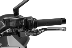 Sistema extensible, que permite ajustar la longitud de la maneta para adaptarse al estilo de conducción o al tamaño de la mano del piloto.