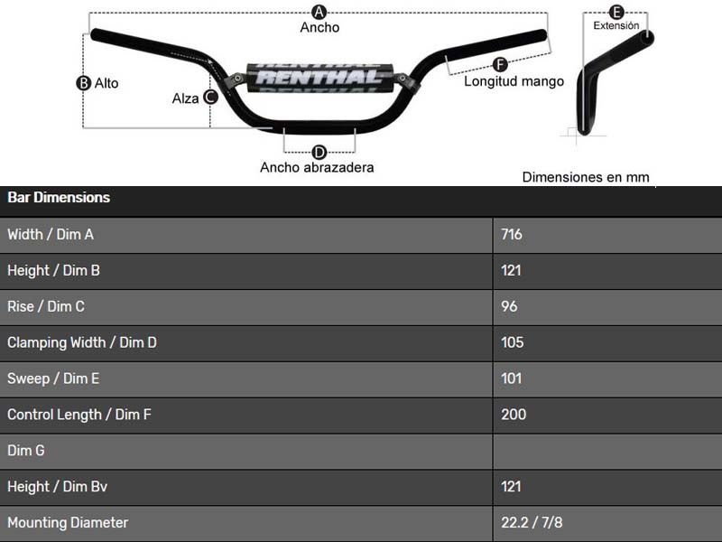Manillar Renthal 7/8 756 Road High Plata. Manillar Renthal 7/8 universal de 22 mm sin refuerzo en la zona central.