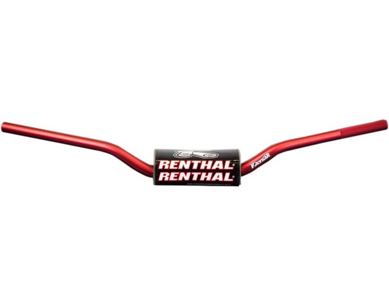 Manillar Renthal Fatbar 839 Rojo. Manillar Renthal Fatbar universal sin refuerzo en la zona central. Elegido por muchos usuarios que desean reducir el peso manteniendo una resistencia elevada. El manillar Renthal Fatbar cuenta con un perfil de pared cónico, siendo mayor en la zona central (28.6 mm) que en los extremos (22.2 mm). Disponible en una gran variedad de medidas y colores, el manillar Renthal Fatbar es elegido por los fabricantes Honda y Suzuki como equipación original.