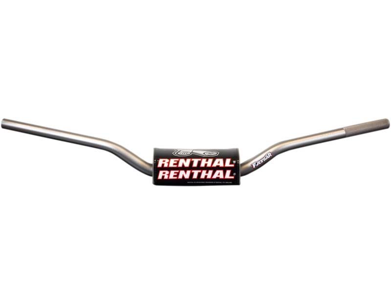 Manillar Renthal Fatbar 839 Titanio. Manillar Renthal Fatbar universal sin refuerzo en la zona central. Elegido por muchos usuarios que desean reducir el peso manteniendo una resistencia elevada. El manillar Renthal Fatbar cuenta con un perfil de pared cónico, siendo mayor en la zona central (28.6 mm) que en los extremos (22.2 mm). Disponible en una gran variedad de medidas y colores, el manillar Renthal Fatbar es elegido por los fabricantes Honda y Suzuki como equipación original.