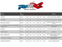 - Tipo/curvatura: RC Ricky Carmichael, Honda CR/CRF 2004-2013, Kawasaki KX/KXF 2006-2013.