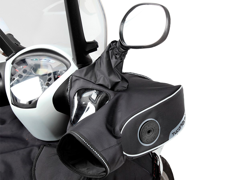 Cubremanos universales Tucano Urbano R334. Cubre puños con diseño universal para manillares con retrovisores, tanto con o sin contrapesos. Confeccionadas en poliamida densa impermeable con interior acolchado. Ventana transparente para una mejor visulalización de los mandos y cierre de seguridad enroscado. Elementos reflectantes. Recomendados para maxi-scooter o moto. Modelo patentado.