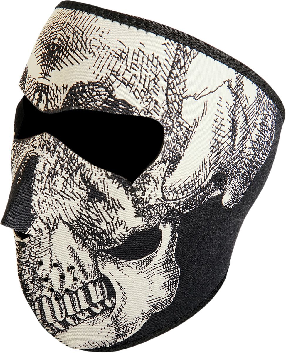 Mascara ZAN Headgear Full Mask Skull Glow WNFM002G. La mascarilla facial ZANheadgear está confeccionada totalmente en neopreno de 2 mm de grosor elástico, cálido y resistente al agua. Ofrece cobertura integral de la cara y las orejas para mayor protección en días de frío. Dispone de un borde de nylon elástico para una mayor durabilidad y mejor acabado del producto. Disponible en un amplia variedad de colores.