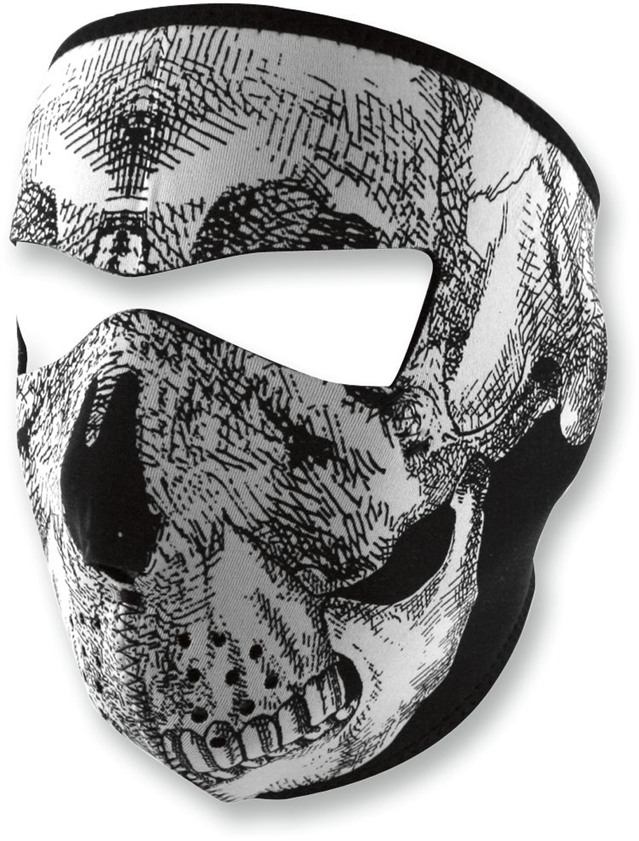 Mascara ZAN Headgear Full Mask Skull WNFM002. La mascarilla facial ZANheadgear está confeccionada totalmente en neopreno de 2 mm de grosor elástico, cálido y resistente al agua. Ofrece cobertura integral de la cara y las orejas para mayor protección en días de frío. Dispone de un borde de nylon elástico para una mayor durabilidad y mejor acabado del producto. Disponible en un amplia variedad de colores.