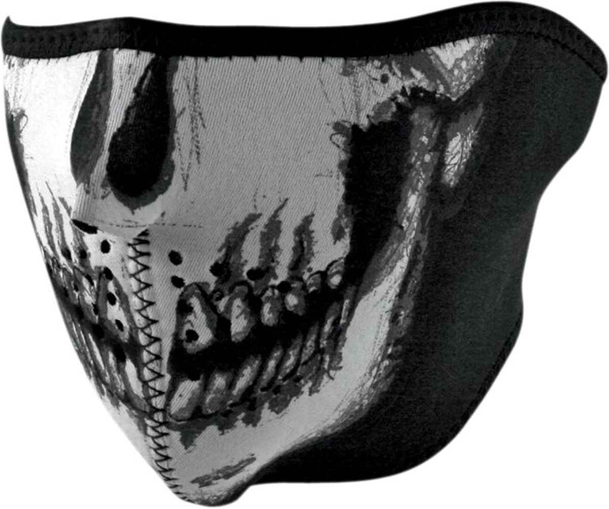 Mascara ZAN Headgear Half Mask Glow Skull WNFM002HG. La mascarilla facial ZANheadgear está confeccionada totalmente en neopreno de 2 mm de grosor elástico, cálido y resistente al agua. Ofrece cobertura completa de nariz, mentón y las mejillas para una óptima protección en días de frío. Dispone de un borde de nylon elástico para una mayor durabilidad y mejor acabado del producto. Disponible en un amplia variedad de colores.