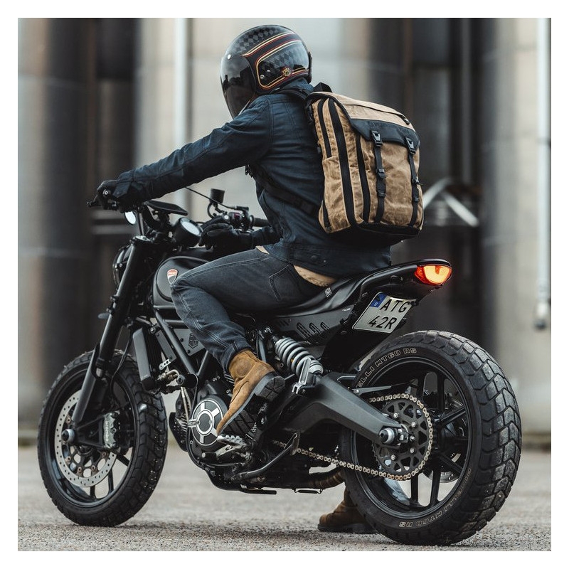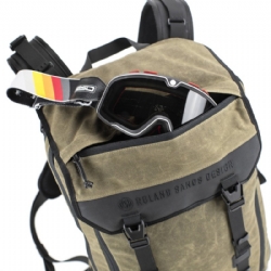 Mochila Kriega RSD Roam 34 Backpack Negro / Arena. Descubre la unión del estilo clásico y la funcionalidad máxima con la mochila de moto Roland Sands Design X Kriega Roam 34. Este exclusivo diseño combina algodón encerado de RSD con Cordura 1000D, junto con el inigualable arnés Quadloc-Lite™ de Kriega, resultando en un accesorio de motociclismo imprescindible.