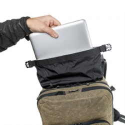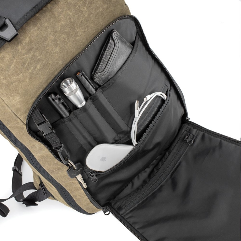 Esta mochila multifuncional está equipada con tres compartimentos principales. Uno destinado para albergar ordenadores portátiles de hasta 15", con un cierre enrollable que garantiza su protección contra el agua. Otro compartimento plegable con cremallera, con una capacidad de 4 litros y múltiples bolsillos organizadores para mantener todo en orden. El tercero, un espacioso compartimento principal de acceso con cremallera YKK® resistente, que se expande desde 22 hasta 30 litros, perfecto para transportar un casco integral o llevar las compras semanales.