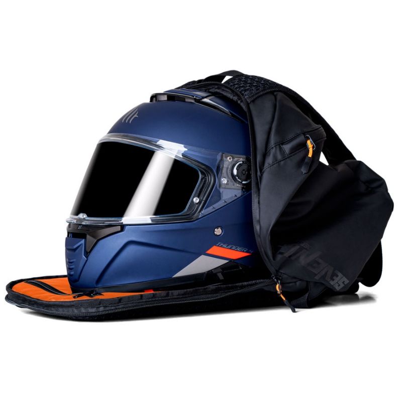 - Capacidad y seguridad: Compartimiento principal con cremallera de acceso trasera, diseñado para guardar un casco integral y más, con una apertura por la espalda que ofrece un acceso extra amplio.