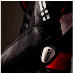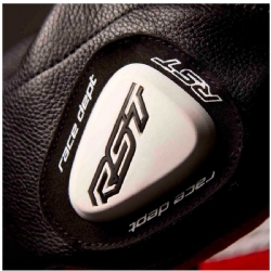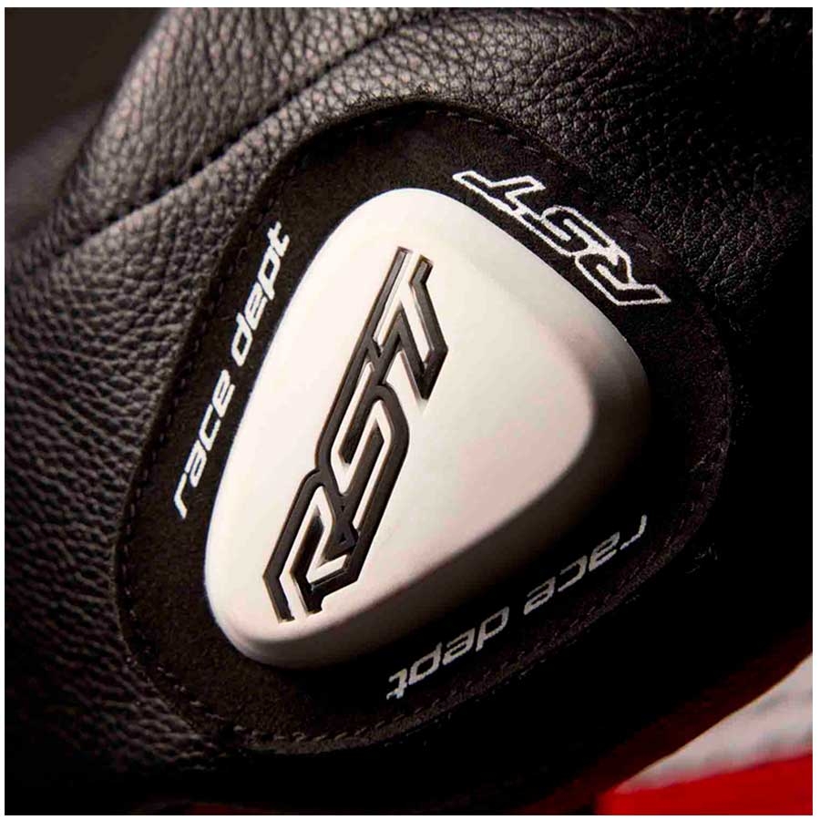 El RST Race Dept V4.2 combina materiales de alto nivel para conseguir una mezcla óptima entre ligereza, tacto racing, resistencia y durabilidad. El cuero de canguro aporta sensibilidad y peso contenido, el vacuno premium teñido en tambor suma robustez y el material AST-R refuerza zonas estratégicas para el uso exigente en pista.