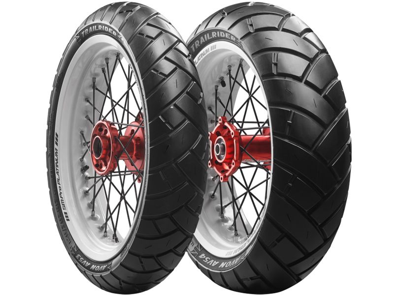 Neumático Avon Trailraider 150/70/17 V69 R TL. Avon Trailrider está diseñado especialmente para motocilcetas trail adventure que principalmente circulan por la carretera y en ocasiones esporádicas sobre terrenos sin pavimentar como barro, arena, terrenos rocosos o gravilla. Ofrece excelente tracción sobre carreteras secas y mojadas así como una óptima estabilidad en frenada y en curva. Buena durabilidad con un desgaste del neumático progresivo.