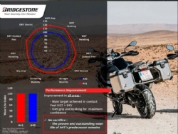 Neumático Bridgestone Adventure A41 190/55/17 V75 R 10279. El nuevo neumático de moto Bridgestone Battlax Adventure A41 ofrece un comportamiento mejorado en carreteras mojadas sin reducir la durabilidad. Respecto a su predecesor el A40, este neumático incorpora un nuevo dibujo y el innovador compuesto CAP BASE de triple capa que proporciona el equilibrio perfecto entre agarre y estabilidad en las curvas. También ha mejorado la adherencia en bajas temperaturas además de aumentar la superficie de contacto (un 5% mayor que el A40) con un distribución mayor y más uniforme de la presión/huella. Más información en la web de Bridgestone moto.