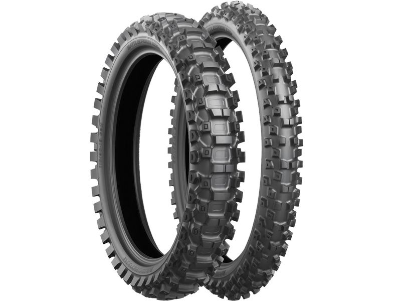 Neumático Bridgestone Battlecross X30 70/100/19 M42 F TT 9792. Battlecross X30 es el nuevo neumático de Bridgestone que ofrece excepcional agarre y tracción en un gran abanico de terrenos. Con la tecnología de motocross más avanzada de Bridgestone, Battlecross X30 te permitirá pilotar la moto con la mejor estabilidad y respuesta del mercado. Máxima absorción en terrenos con baches y mayor sensación de contacto, especialmente a la hora de tomar curvas o evitar obstáculos. Cuenta con una respuesta flexible en el terreno, incluso en cambios de superficies. También ofrece más tracción y adherencia, tanto en suelos arcillosos como endurecidos.