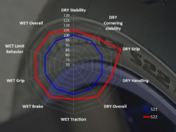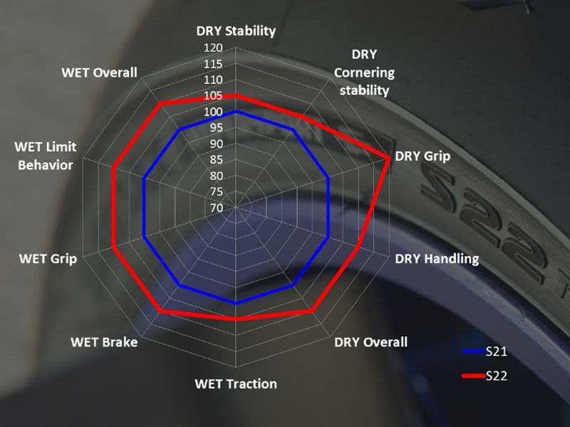 Las mejoras no se detienen ahí. Los cambios en el dibujo y en los compuestos del neumático Bridgestone S22 se han realizado con un propósito muy específico. Aparte de proporcionar mayor agarre en las curvas, tanto en condiciones de seco como de mojado, estos cambios también mejoran la evacuación del agua durante los aguaceros intensos, aumentando la seguridad y la confianza del piloto.