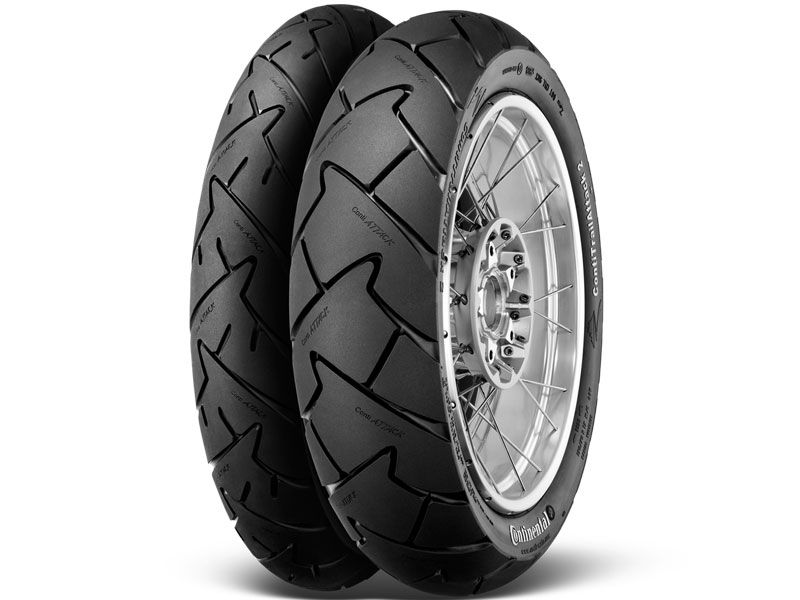 Neumático Continental ContiTrailAttack 2 170/60/17 W72. Continental ContiTrailAttack 2 es el neumático destinado especialmente a las motocicletas Trail de gran cilindrada y que se caracteriza por su excelente adherencia en carreteras mojadas y su gran durabilidad. Equipa de origen en KTM, ContiTrailAttack 2 posee el rueda delantera un dibujo innovador combinado con una carcasa reforzada que garantiza un desgaste óptimo y alta precisión en la conducción. El neumático trasero aporta un alto grado de estabilidad y confort a altas velocidades (incluso con grandes cargas) gracias a su cinturón de acero de 0 grados.