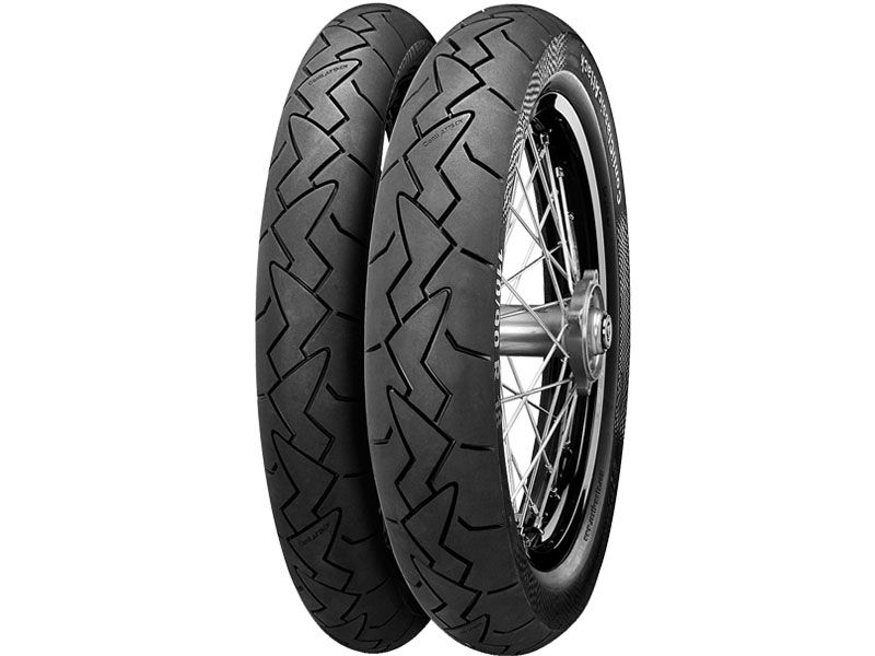 Neumático Continental Conticlassicattack 100/90/19 57V TL F 244178. El nuevo neumático radial Continental Conticlassicattack ha sido concebido especialmente para las motos clásicas. Se caracteriza por ofrecer una excelente adherencia en cualquier condición climática incluso en mojado o carretera fria. Continental Conticlassicattack ofrece una sensación de manejo siempre controlable y de óptima respuesta. La carcasa de diseño radial ha sido optimizada para mejorar la estabilidad y el manejo. El perfil posee un diseño orientado en el desgaste progresivo.