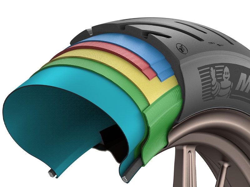 - La estructura del neumático Michelin Road Classic es de tipo diagonal cinturada (Bias Belted), con 2 lonas de carcasa que aportan al mismo tiempo rigidez y flexibilidad, y dos lonas en la cima bajo la banda de rodadura, que reducen la deformación debido al aumento de la fuerza centrífuga con la velocidad, permitiendo mantener una huella de contacto óptima. Gracias a sus características, este tipo de estructura hace que la motocicleta sea más manejable y resulte más fácil de pilotar.