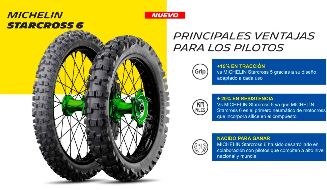 • Un Michelin Starcross para cada tipo de terreno: Sand, Mud, Medium Soft, Medium Hard y  Hard.