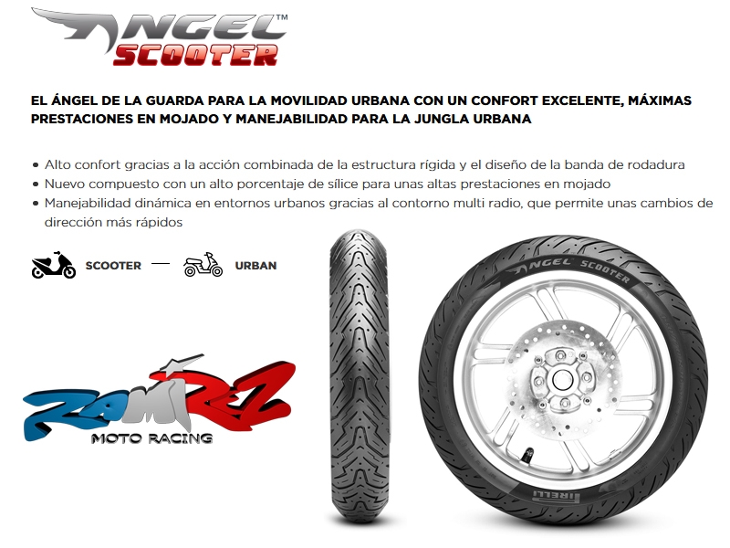 Neumático Pirelli Angel Scooter 110/70/14 S56 R 2925600. El neumático Pirelli Angel Scooter ofrece un comportamiento excelente por la ciudad, tanto en asfalto mojado como asfalto seco, gracias a su compuesto derivado de la moto. Incorpora una estructura rígida que junto con el diseño de la banda de rodadura, proporcionan altos niveles de confort durante la conducción. Manejabilidad dinámica en entornos urbanos gracias al contorno multi radio, que permite unas cambios de dirección más rápidos. Precio por neumático.