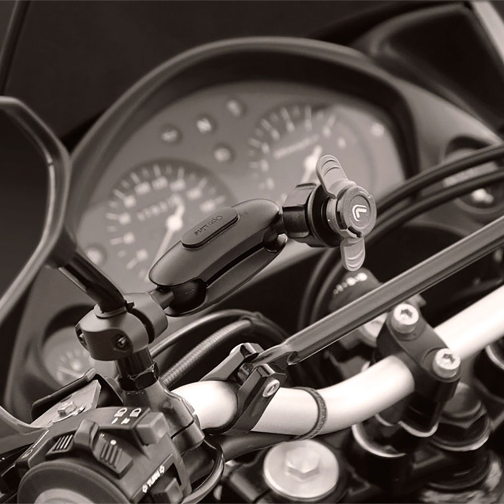 Optiline Titan Bar Orbit Fijación Para Espejos Y Travesaños / Referencia del producto: 90561. El nuevo Optiline Titan Bar Orbit de fijación a espejos y travesaños. Este brazo totalmente ajustable con doble agarre en bolas ofrece un posicionamiento y visibilidad óptimos. Para amortiguar todos los impactos y vibraciones, el brazo Optiline Titan Bar Orbit tiene un doble agarre sobre bolas recubiertas de goma. Estructura metálica fabricada en alta resistencia. Compatible con todas las fundas de Optiline. Sistema rápido de contacto/liberación llamado DuoLock.