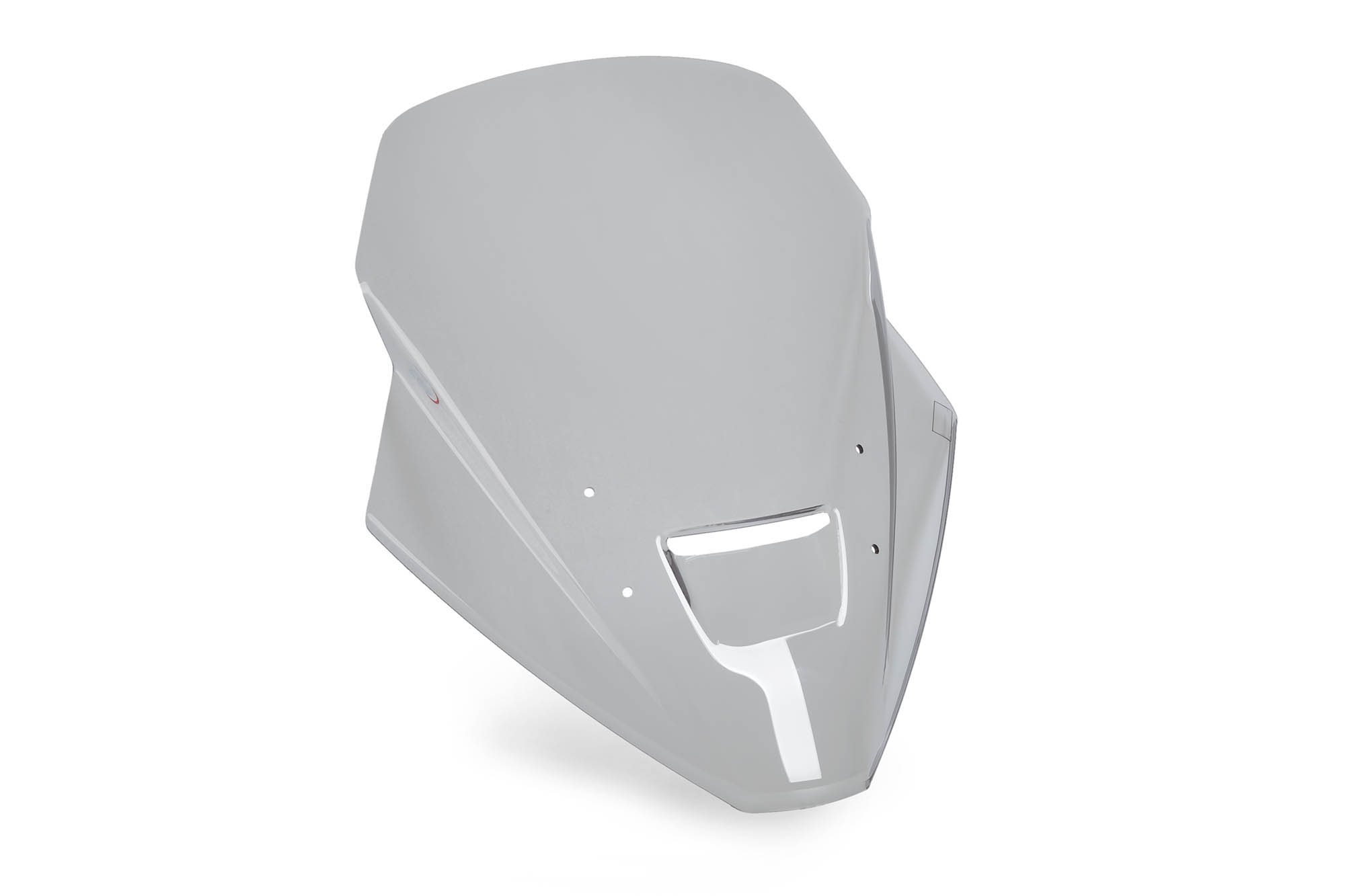 Su diseño forma parte de la gama V-Tech Line de Puig, desarrollada y testada en túnel del viento para lograr la máxima eficacia aerodinámica. La forma angulosa en la parte central y lateral facilita la canalización del aire, redirigiéndolo hacia los laterales y minimizando las turbulencias sobre el casco y la parte superior del cuerpo, lo que se traduce en una conducción más relajada y estable.