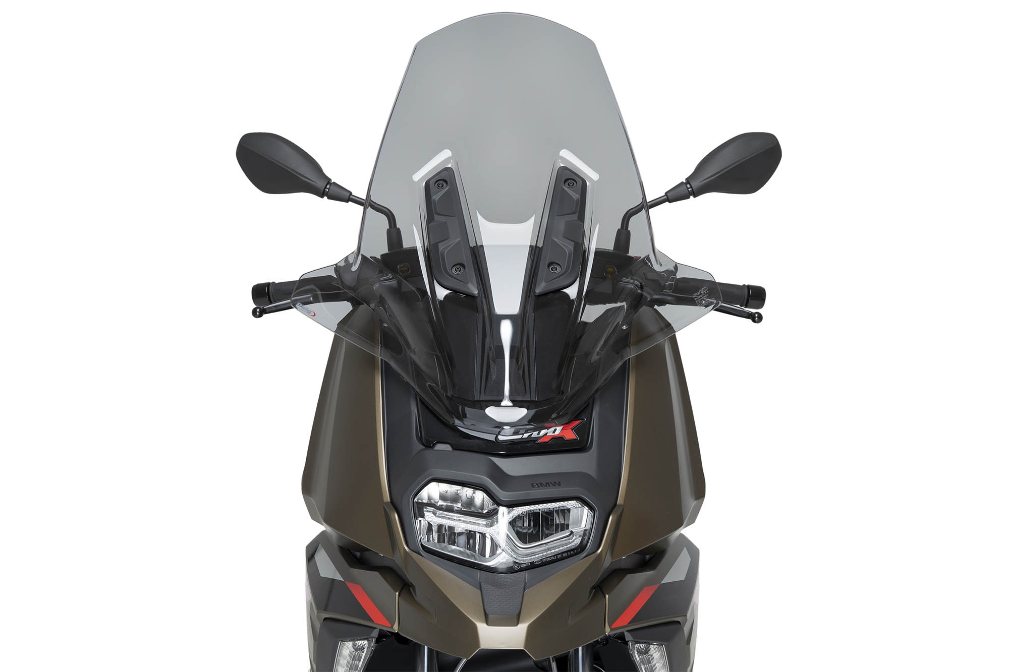 Pantalla Puig 22410H V-Tech Line Touring BMW C400X 2019-2025 Ahumada clara. La pantalla V-Tech Line Touring Puig 22410 es el accesorio ideal para los usuarios de la BMW C400X 2019-2025 que buscan una protección aerodinámica muy superior a la de serie y un plus de confort en sus desplazamientos diarios y viajes. Disponible en Ramírez Moto, está diseñada para integrarse con las líneas modernas del scooter, reforzando su carácter touring sin comprometer la visibilidad ni el diseño original de la moto.