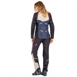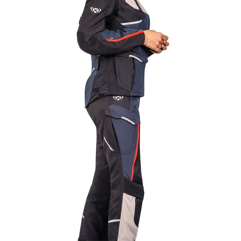 Pantalón Ixon Eddas Lady Greige / Navy / Negro. El pantalon Ixon Eddas es una de las novedades de la gama Adventure 2021 de Ixon, pensado para cubrir largas distancias por adversas que sean las condiciones climatológicas. Gracias a su membrana X-Dry de 20.000mm de impermeabilidad y 10,000 G/m2 de transpirabilidad nos mantendrá secos en cualquier condición. Sus ventilaciones en la zona de los muslos y su forro térmico extraíble de 80 gramos lo convierten en un pantalón polivalente y funcional. Con ajustes en mediante correa de velcro en la cintura, tirantes ajustables y desmontables, paneles flexibles por encima de las rodillas, y ajustes con doble tira de velcro en los bajos nos garantiza un ajuste y confort total. Confeccionados en Poliester 600D y Ripstop, refuerzos 1200D en rodillas obtiene una calificación de resistencia a la abrasión AA. Combinándolos con la chaqueta Eddas mediante la cremallera de unión conseguimos una equipación de alta calidad a un precio muy competitivo.