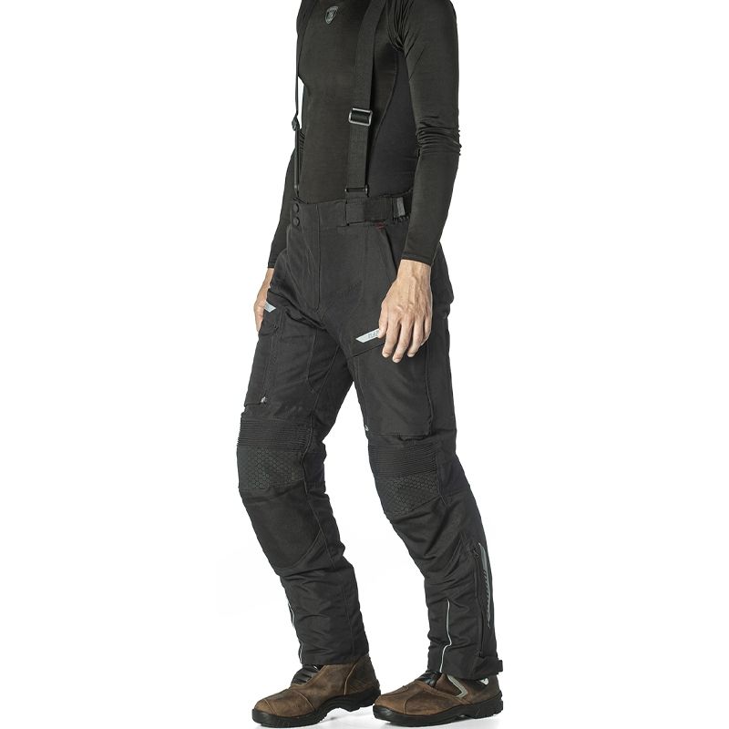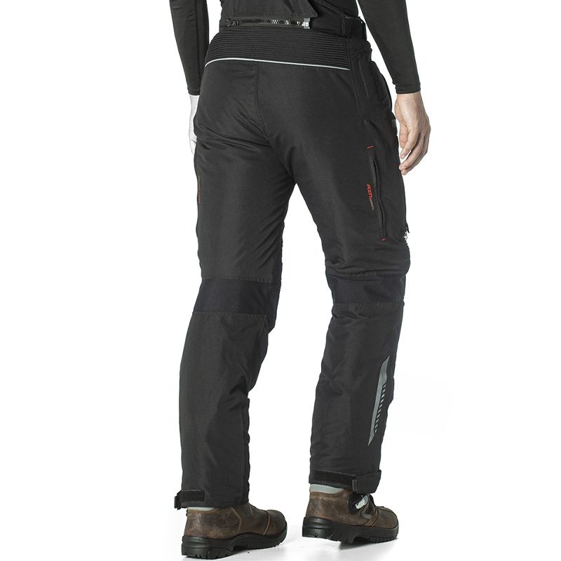 Pantalon Rainers Trivor Negro Corto. El pantalón Rainers Trivor está diseñado para ofrecer altos niveles de confort, protección y funcionalidad en conducción de turismo. Este pantalón es ideal para recorrer largas distancias y es muy eficiente sobre cualquier condición climática; gracias a la membrana impermeable extraíble, al forro térmico desmontable y a los amplios paneles perforados (desmontables). Confeccionado principalmente en Nylon 600-D y Poliéster, el pantalón Trivor incorpora numerosas regulaciones para garantizar un ajuste altamente personalizable. Incorpora protecciones homologadas (CE) en rodillas y caderas, detalles reflectantes ubicados en zonas estratégicas y amplios bolsillos. Combinándolo con la chaqueta Rainers Trivor podrás disfrutar de una equipación muy versátil y confortable.