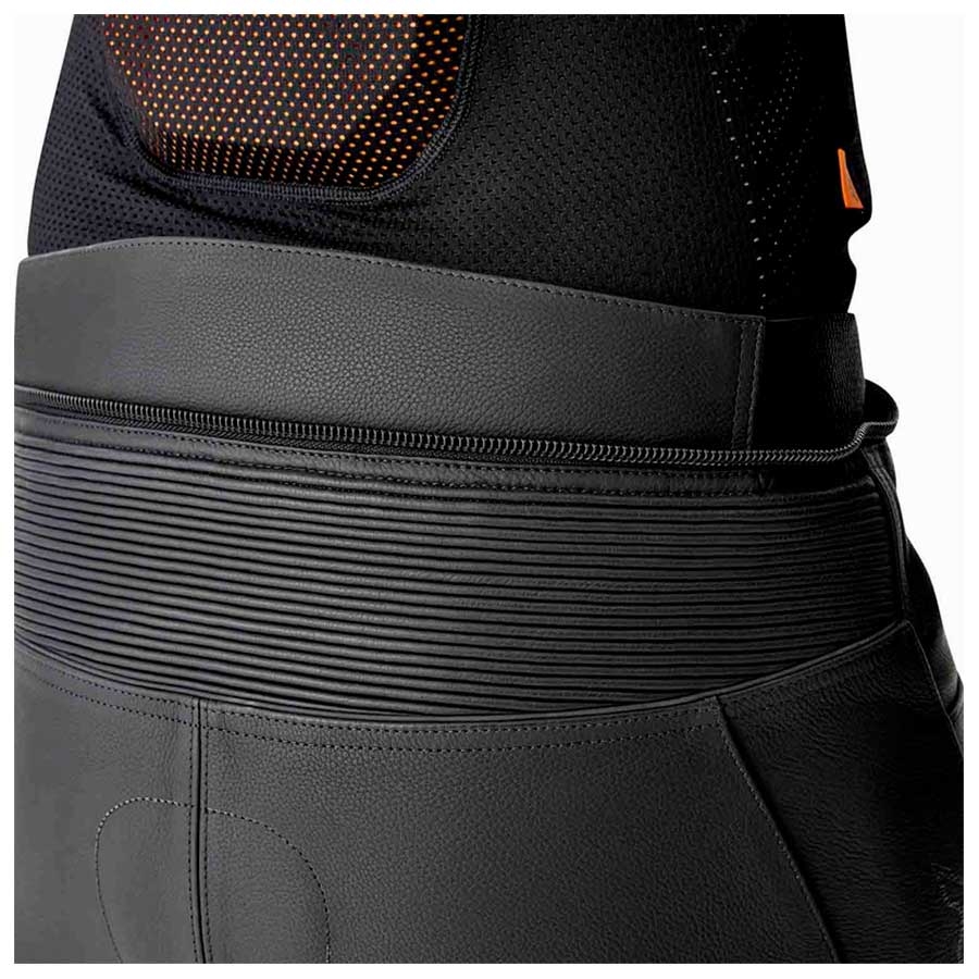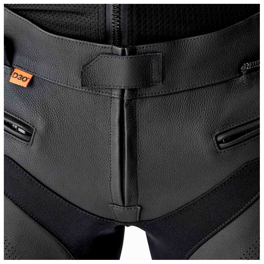 Está homologado CE AAA e incorpora protecciones D3O Nivel 1 en cadera y rodilla larga. La construcción en cuero full grain con refuerzos A5T+ y un interior de malla fija ofrece un tacto sport y resistente, mientras que detalles como el 4-way stretch, los paneles elásticos laterales y el cuero perforado “panel-in-panel” aportan confort y libertad de movimiento.