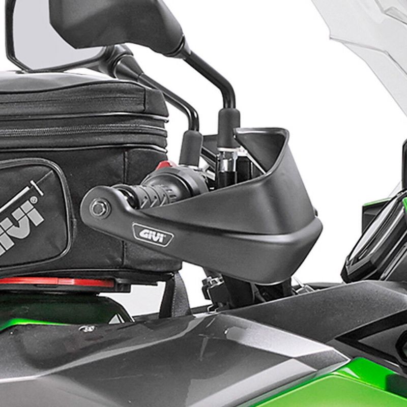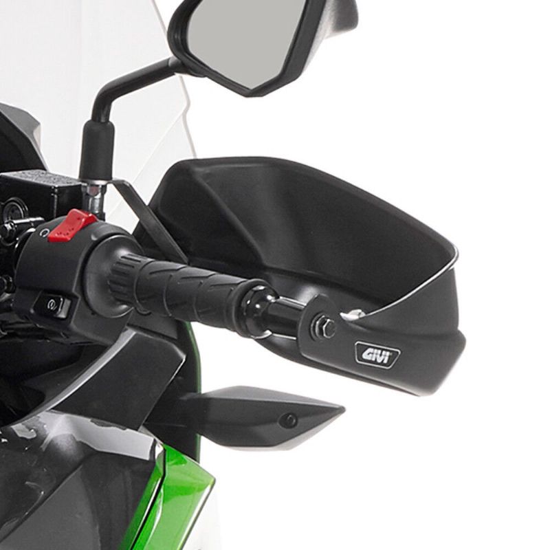 Paramanos Givi HP4121B Kawasaki Versys-X 300 2017-2023. Los paramanos Givi HP4121B para la Kawasaki Versys-X 300 (2017-2023) están diseñados para proporcionar protección y comodidad al conductor de esta motocicleta versátil y capaz. Hechos de tecnopolímero, un material conocido por su resistencia y durabilidad, estos paramanos no solo protegen las manos del conductor contra los elementos y los escombros del camino, sino que también pueden ofrecer una protección adicional en caso de caída o choque leve.