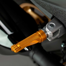 Cada posapié ha sido anodizado para aumentar su durabilidad frente al desgaste y la corrosión, y está disponible en 6 colores distintos para que puedas personalizar tu moto según tu estilo: negro, oro, rojo, plata, cobalto o verde. El mecanizado especial de la superficie proporciona un extra de agarre al piloto, mejorando la seguridad y el control en todo tipo de condiciones.