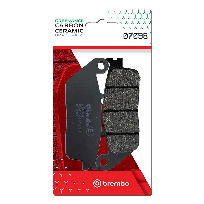 Pastillas Freno Brembo 07098CC Trasera Carbon Ceramic. La pastilla de freno Brembo 07098 representa la evolución del compuesto orgánico con un uso de mayor cantidad de carbono. El compuesto CC de Brembo está diseñado especialmente para Scooters, con una excelente relación calidad / precio, larga duración y un excelente rendimiento en todas las condiciones de uso. Se asegura un alto kilometraje y una gran estabilidad en la frenada.