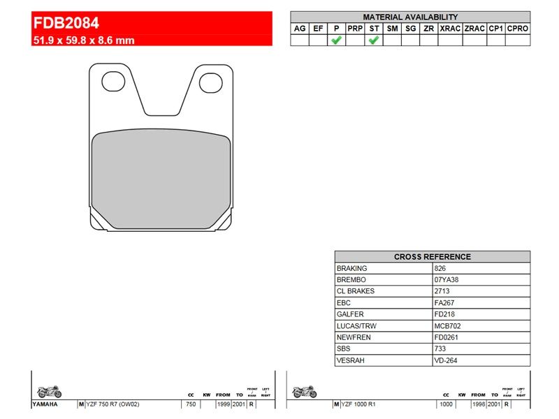 Pastillas de freno Ferodo FDB2084P P Platinum. Compuesto de carbono para uso en carretera de alto rendimiento que incorpora la tecnología obtenida por Ferodo en las competiciones más prestigiosas. El material ha sido desarrollado para proporcionar una buena potencia de frenada y constante a la vez que ofrecen excelente durabilidad. Adecuado para todas las motos de carretera que necesitan tecnología orgánica (resina). Precio por juego.