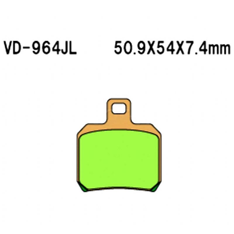 Pastillas de freno Vesrah VD-964JL metal sinterizado (delantera o trasera según modelo de moto). Las pastillas de freno Vesrah VD-964JL están fabricadas con un compuesto metálico sinterizado de alto rendimiento, diseñado para ofrecer una frenada potente, constante y progresiva en todo tipo de scooters y motocicletas ligeras. Son equivalentes a las Galfer FD220 y se montan tanto en el eje delantero como trasero, dependiendo del modelo de moto.