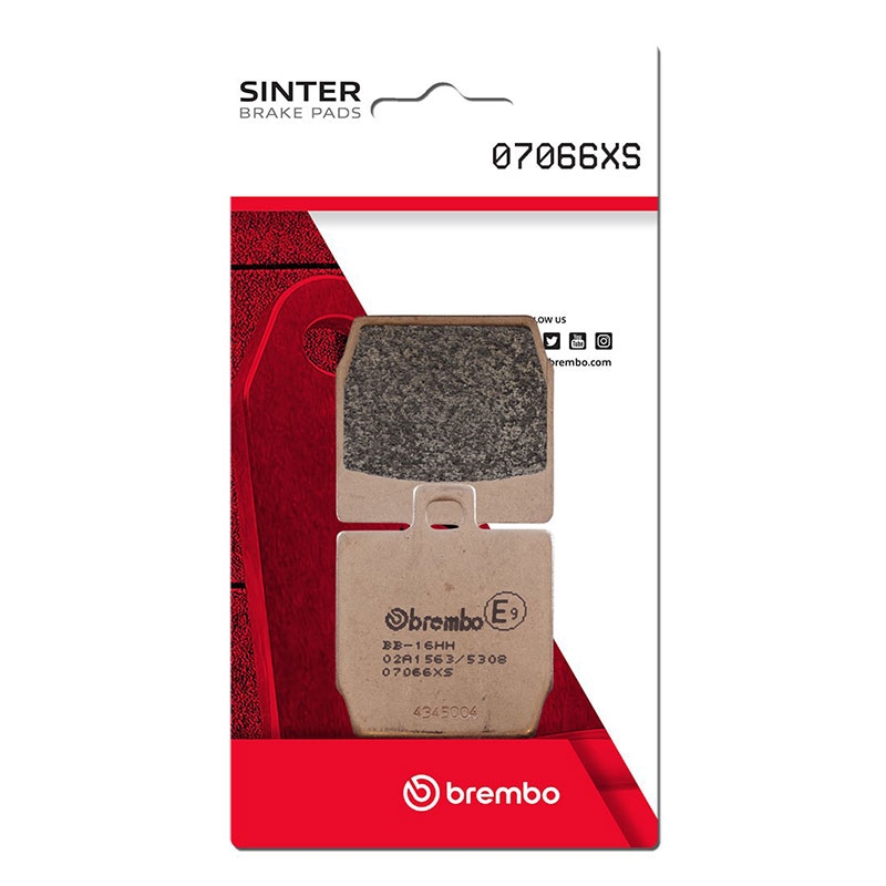 Pastillas freno Brembo 07066XS. La pastilla de freno Brembo 07066XS cuenta con el compuesto XS sinterizado, específico para aplicaciones en Scooter, tanto en freno delantero como en freno trasero. Es un material extremadamente estable, que garantiza una frenada con prestaciones constantes en cualquier situación de conducción. Brembo XS es el compuesto ideal para Maxi Scooters de última generación. Las pastillas de freno Brembo 07066XS se suministran en juegos, es decir un blister es para una pinza de freno. La imagen puede ser sólo indicativa en algunos casos.