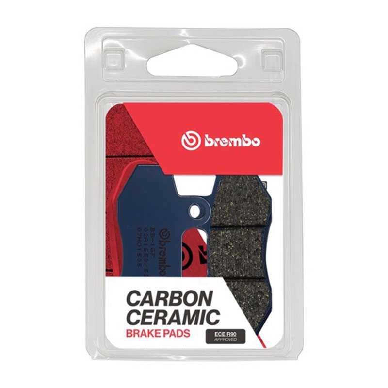 Pastillas freno Brembo 07HO1505. La pastilla de freno Brembo 07HO1505 (Carbon Ceramic) representa la evolución del compuesto orgánico con un uso de mayor cantidad de carbono. El compuesto Carbon Ceramic de Brembo, proporciona una buena frenada, un alto kilometraje y un buen rendimiento en caliente y frío o seco y mojado. La pastilla de freno en algunos casos puede ser delantera o trasera dependiendo del modelo de motocicleta. Ver pdf anexo con lista de aplicaciones. La imagen puede ser sólo indicativa en algunos casos.