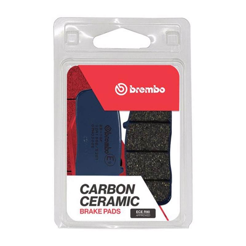 Pastillas freno Brembo 07HO3005. La pastilla de freno Brembo 07HO3005 (Carbon Ceramic) representa la evolución del compuesto orgánico con un uso de mayor cantidad de carbono. El compuesto Carbon Ceramic de Brembo, proporciona una buena frenada, un alto kilometraje y un buen rendimiento en caliente y frío o seco y mojado. La pastilla de freno en algunos casos puede ser delantera o trasera dependiendo del modelo de motocicleta. Ver pdf anexo con lista de aplicaciones. La imagen puede ser sólo indicativa en algunos casos.