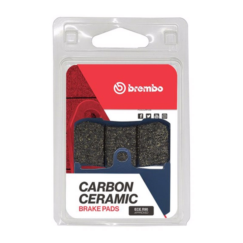 Pastillas freno Brembo 07KA2305. La pastilla de freno Brembo 07KA2305 (Carbon Ceramic) representa la evolución del compuesto orgánico con un uso de mayor cantidad de carbono. El compuesto Carbon Ceramic de Brembo, proporciona una buena frenada, un alto kilometraje y un buen rendimiento en caliente y frío o seco y mojado. La pastilla de freno en algunos casos puede ser delantera o trasera dependiendo del modelo de motocicleta. Ver pdf anexo con lista de aplicaciones. La imagen puede ser sólo indicativa en algunos casos.