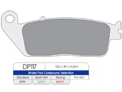 Pastillas freno Dp Brakes DP117 Standard. Las pastillas de freno sinterizadas estándar DP proporcionan una óptima frenada tanto en caliente como en frío y en condiciones de mojado o seco. El periodo de rodaje es muy reducido, obteniendo el máximo rendimiento en un tiempo reducido. Diseñadas y fabricadas con materiales de garantizan una frenada muy buena y un rendimiento absoluto. El material cerámico (a base de óxido) de aluminio de color gris en la placa posterior mantiene el calor alejado del pistón de la pinza de freno para un rendimiento más estable. Las pastillas de freno sinterizadas estándar DP nos son abusivas en la mayoría de los discos, generan muy poco polvo en los frenos y además son muy silenciosas. Cada juego de pastillas de freno Dp Brakes contiene lo necesario para una pinza. La imagen mostrada de las pastillas de freno Dp Brakes DP117 puede ser genérica.