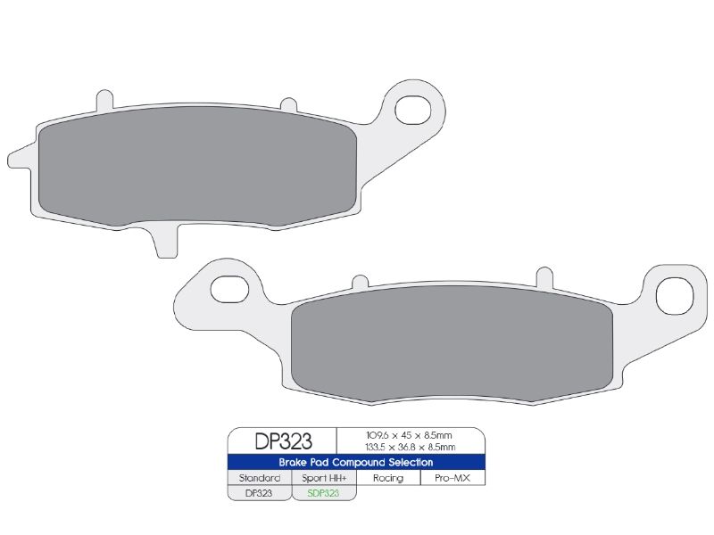 Pastillas freno Dp Brakes DP323 Standard. Las pastillas de freno sinterizadas estándar DP proporcionan una óptima frenada tanto en caliente como en frío y en condiciones de mojado o seco. El periodo de rodaje es muy reducido, obteniendo el máximo rendimiento en un tiempo reducido. Diseñadas y fabricadas con materiales de garantizan una frenada muy buena y un rendimiento absoluto. El material cerámico (a base de óxido) de aluminio de color gris en la placa posterior mantiene el calor alejado del pistón de la pinza de freno para un rendimiento más estable. Las pastillas de freno sinterizadas estándar DP nos son abusivas en la mayoría de los discos, generan muy poco polvo en los frenos y además son muy silenciosas. Cada juego de pastillas de freno Dp Brakes contiene lo necesario para una pinza. La imagen mostrada de las pastillas de freno Dp Brakes DP323 puede ser genérica.