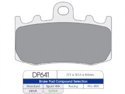 Pastillas freno Dp Brakes DP641 Standard. Las pastillas de freno sinterizadas estándar DP proporcionan una óptima frenada tanto en caliente como en frío y en condiciones de mojado o seco. El periodo de rodaje es muy reducido, obteniendo el máximo rendimiento en un tiempo reducido. Diseñadas y fabricadas con materiales de garantizan una frenada muy buena y un rendimiento absoluto. El material cerámico (a base de óxido) de aluminio de color gris en la placa posterior mantiene el calor alejado del pistón de la pinza de freno para un rendimiento más estable. Las pastillas de freno sinterizadas estándar DP nos son abusivas en la mayoría de los discos, generan muy poco polvo en los frenos y además son muy silenciosas. Cada juego de pastillas de freno Dp Brakes contiene lo necesario para una pinza. La imagen mostrada de las pastillas de freno Dp Brakes DP641 puede ser genérica.
