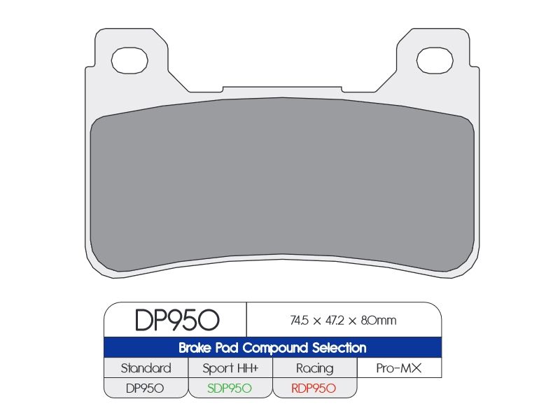 Pastillas freno Dp Brakes DP950 Standard. Las pastillas de freno sinterizadas estándar DP proporcionan una óptima frenada tanto en caliente como en frío y en condiciones de mojado o seco. El periodo de rodaje es muy reducido, obteniendo el máximo rendimiento en un tiempo reducido. Diseñadas y fabricadas con materiales de garantizan una frenada muy buena y un rendimiento absoluto. El material cerámico (a base de óxido) de aluminio de color gris en la placa posterior mantiene el calor alejado del pistón de la pinza de freno para un rendimiento más estable. Las pastillas de freno sinterizadas estándar DP nos son abusivas en la mayoría de los discos, generan muy poco polvo en los frenos y además son muy silenciosas. Cada juego de pastillas de freno Dp Brakes contiene lo necesario para una pinza. La imagen mostrada de las pastillas de freno Dp Brakes DP950 puede ser genérica.