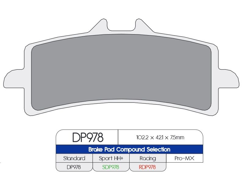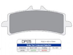 Pastillas freno Dp Brakes DP978 Standard. Las pastillas de freno sinterizadas estándar DP proporcionan una óptima frenada tanto en caliente como en frío y en condiciones de mojado o seco. El periodo de rodaje es muy reducido, obteniendo el máximo rendimiento en un tiempo reducido. Diseñadas y fabricadas con materiales de garantizan una frenada muy buena y un rendimiento absoluto. El material cerámico (a base de óxido) de aluminio de color gris en la placa posterior mantiene el calor alejado del pistón de la pinza de freno para un rendimiento más estable. Las pastillas de freno sinterizadas estándar DP nos son abusivas en la mayoría de los discos, generan muy poco polvo en los frenos y además son muy silenciosas. Cada juego de pastillas de freno Dp Brakes contiene lo necesario para una pinza. La imagen mostrada de las pastillas de freno Dp Brakes DP978 puede ser genérica.