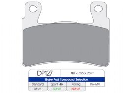 Pastillas freno Dp Brakes RDP127 RDP X-Race Titanium. Pastillas de freno Dp Brakes RDP127 sinterizadas RDP X-Race Titanium. El diseño y los materiales de las pastillas de freno DP Brakes garantizan una fuerte frenada en seco y un rendimiento máximo, incluso en competiciones al más alto nivel. Las pastillas de freno DP Brakes tienen un periodo de rodaje muy reducido que les permite obtener el máximo rendimiento en el menor tiempo posible.El compuesto de RDP X-Race Titanium supera los antiguos RDP, permitiendo a los pilotos frenar más tarde y usar el freno en curva con un muy alto grado de control. La imagen mostrada de las pastillas de freno Dp Brakes RDP127 puede ser genérica.