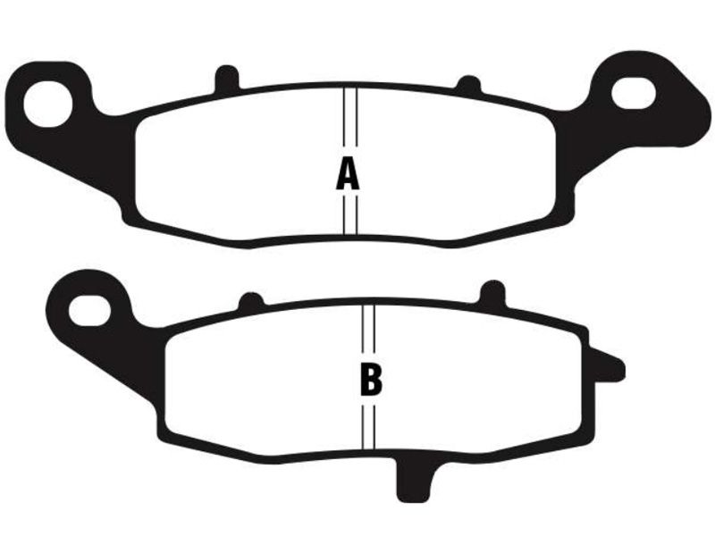 Pastillas de Freno Ebc FA229 (delanteras). Estas pastillas frenan igual que las pastillas sinterizadas. Fabricadas en la fábrica de Bristol, Inglaterra, las pastillas de la serie Kevlar® de Ebc se identifican con el nuevo nombre de serie NAO o Non-Asbestos Organic, aunque aún utilizan la famosa fibra Dupont Kevlar junto a otras fibras de alta tecnología que han entrado en el mercado. Las pastillas de la serie NAO constituyen un tipo de recambio de gran rentabilidad para motocicletas de todos los niveles y son muy populares entre muchos pilotos, quienes prefieren sentir las "sensaciones" que se experimentan al utilizar pastillas orgánicas. La mayoría de las pastillas orgánicas EBC cuentan con ranuras de dilatación que reducen el ruido y previenen las posibles roturas. El compuesto de fibra arámida con partículas no ferrosas ayuda a prevenir el sobrecalentamiento de la superficie bajo condiciones de carga. Precio por juego. Precio por juego. Medidas: (A) 133.5 X 36.8 x 8.4 MM / (B) 109.6 X 44.4 X 8.5 MM.