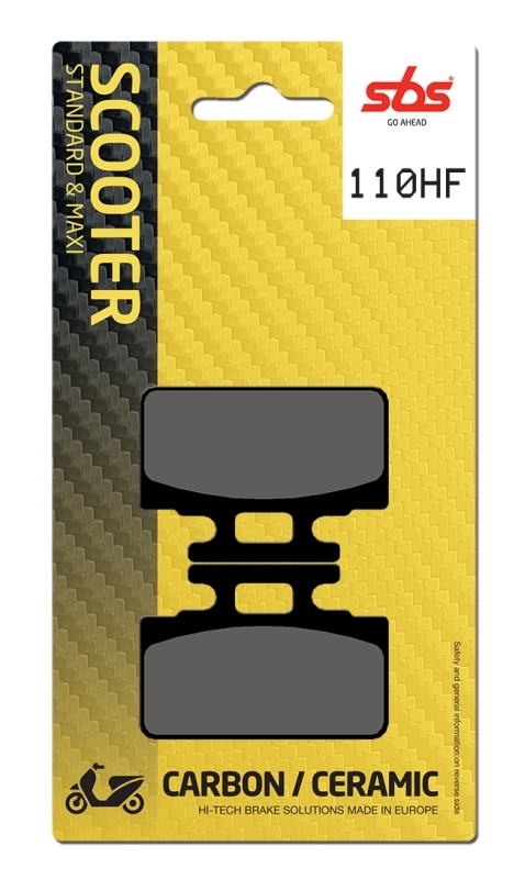 Pastillas freno Sbs 110-HF. Las pastillas de freno para scooters Sbs 110-HF (compuesto HF cerámico), ofrecen una frenada estable, indistintamente si el freno es delantero o trasero. Se caracterizan por su alto nivel de confort y larga duración. También ofrecen una óptima protección al disco de freno sobre cualquier condición climática. Precio por juego. Adjuntamos un PDF con el catalogo SBS para más información sobre compatibilidades con cada modelo de moto.