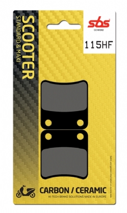 Pastillas freno Sbs 115-HF. Las pastillas de freno para scooters Sbs 115-HF (compuesto HF cerámico), ofrecen una frenada estable, indistintamente si el freno es delantero o trasero. Se caracterizan por su alto nivel de confort y larga duración. También ofrecen una óptima protección al disco de freno sobre cualquier condición climática. Precio por juego. Adjuntamos un PDF con el catalogo SBS para más información sobre compatibilidades con cada modelo de moto.
