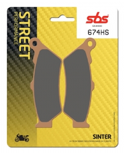 Pastillas freno Sbs 674-HS. Las pastillas de freno Sbs 674-HS (compuesto HS sinterizado), se caracterizan por ofrecer una frenada potente, con muy buena estabilidad térmica y de excelente tacto. Desarrollada especialmente uso en motos deportivas y de alta cilindrada, las pastillas de freno Sbs HS protege el disco y además su rendimiento es estable en condiciones tanto secas como húmedas. Precio por juego. Adjuntamos un PDF con el catalogo SBS para más información sobre compatibilidades con cada modelo de moto.