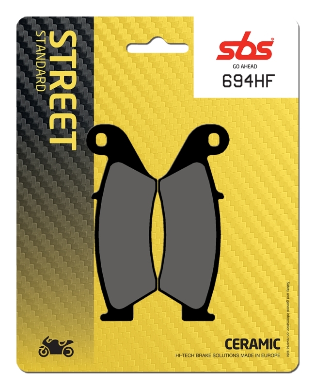Pastillas freno Sbs 694-HF. Las pastillas de freno Sbs 694-HF con compuesto HF cerámico ofrecen una frenada estable, indistintamente si el freno es delantero o trasero. Se caracterizan por su alto nivel de confort y larga duración. También ofrecen una óptima protección al disco de freno sobre cualquier condición climática. Precio por juego. Adjuntamos un PDF con el catalogo SBS para más información sobre compatibilidades con cada modelo de moto.
